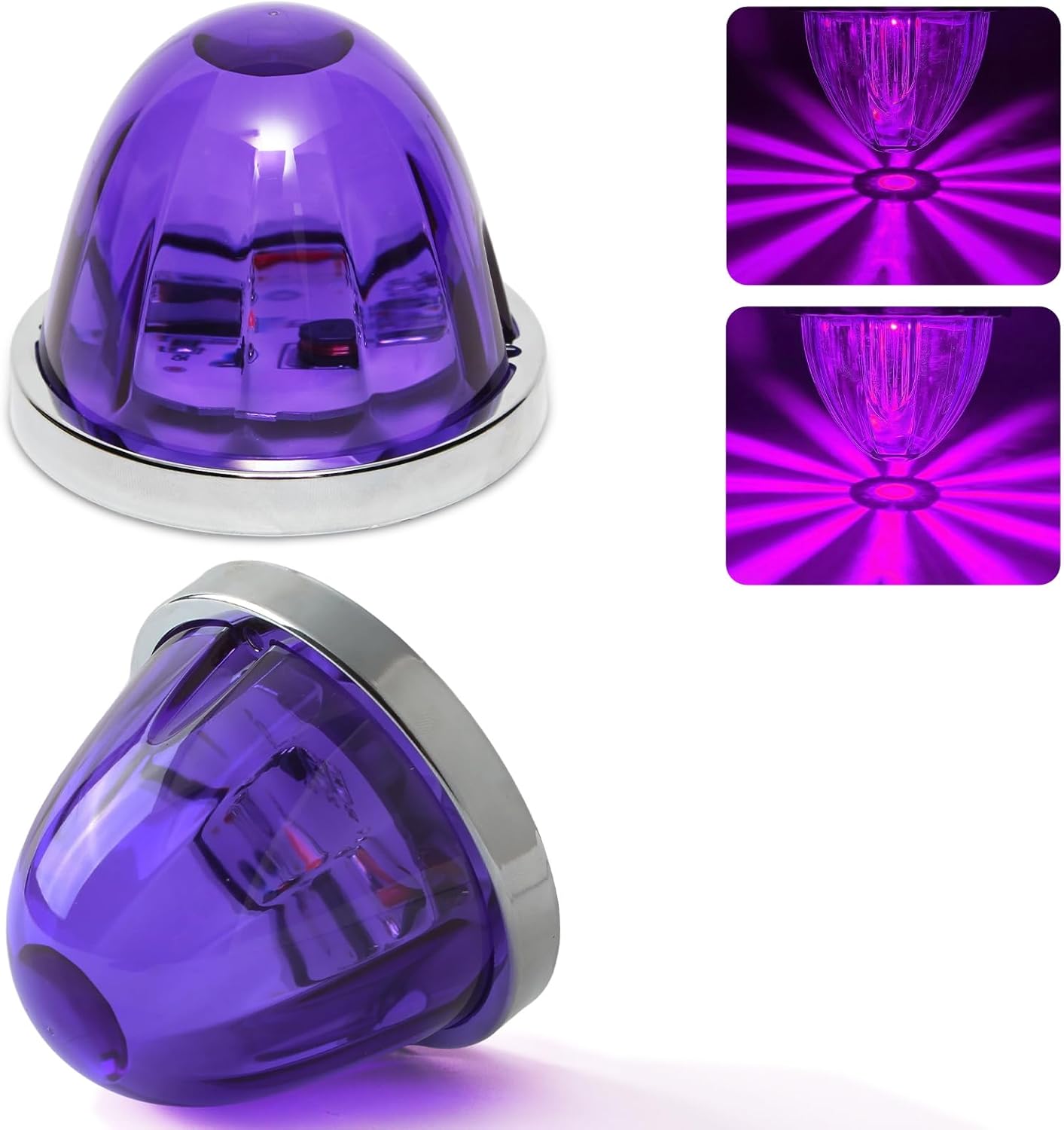4PCS Watermelon Lights, Purple Strobe & Constant Multi-Function LED Side Marker, Turn Signal, Tail & Roof Lights with Stainless Steel Bezel for Freightliner, Kenworth, Peterbilt Semi Trucks & Trailers