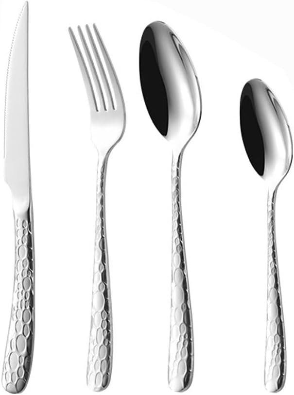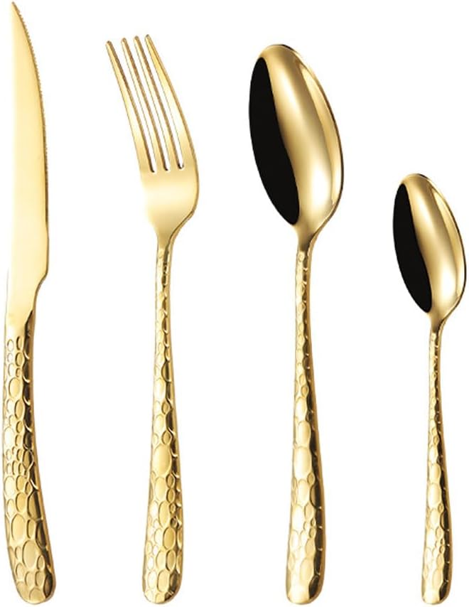 Packing quantity: 4 pieces = (dinner knife*1, fork*1, dinner spoon*1, tea spoon*1)16 pieces = (dinner knife*4, fork*4, dinner spoon*4, tea spoon*4) Pattern: solid color Product category: knife, fork and spoon Color: silver, gold Polishing process: cloth wheel polish (mirror polishing) Style type: light luxury retro Material: 410 stainless steel Style: American